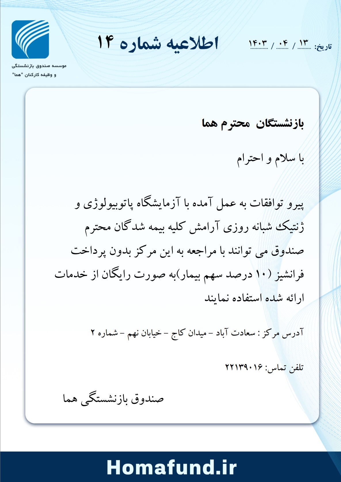 خدمات رایگان آزمایشگاه پاتوبیولوژی و ژنتیک